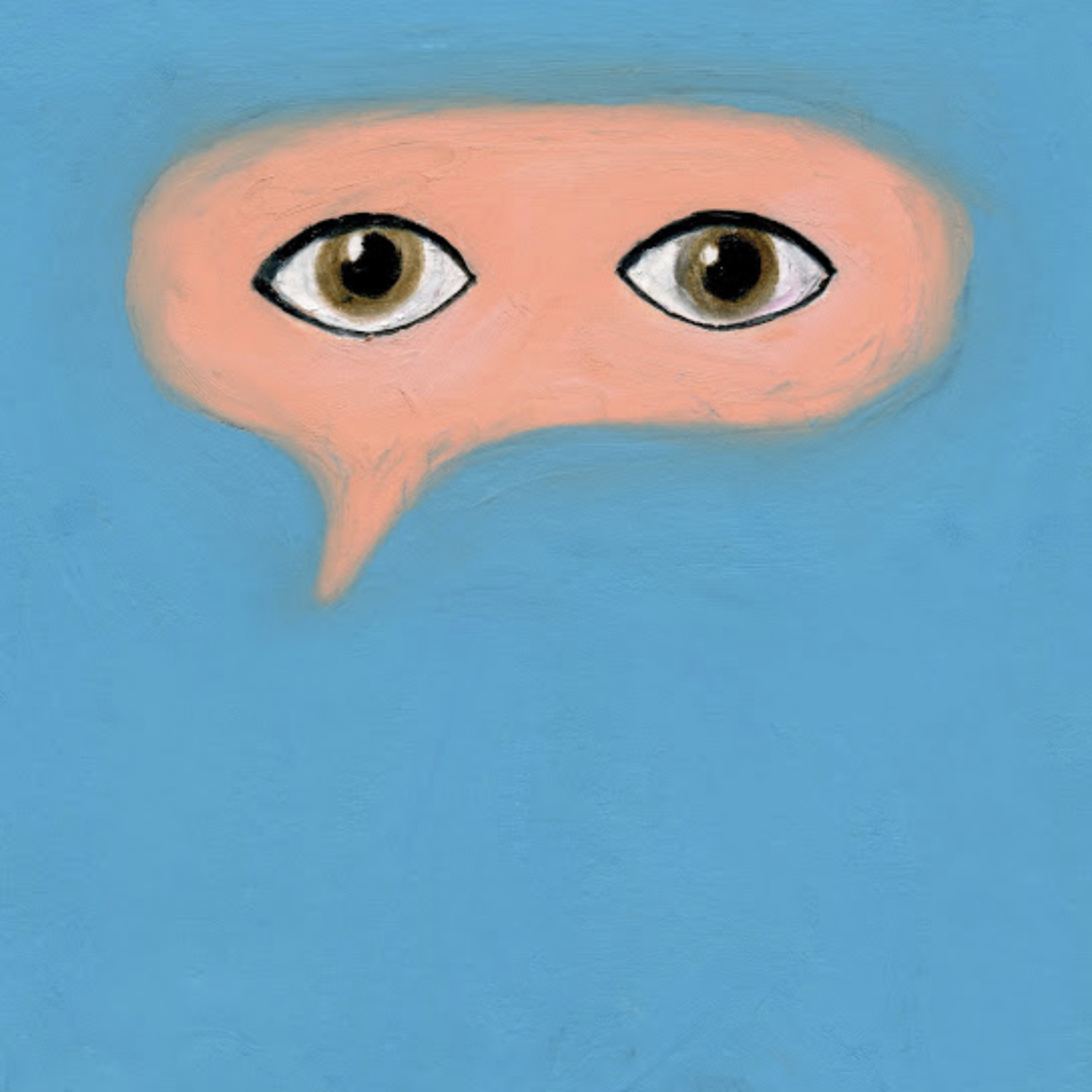 앨범 자켓이 말풍선 안에 누군가의 눈이 그려져 있습니다.