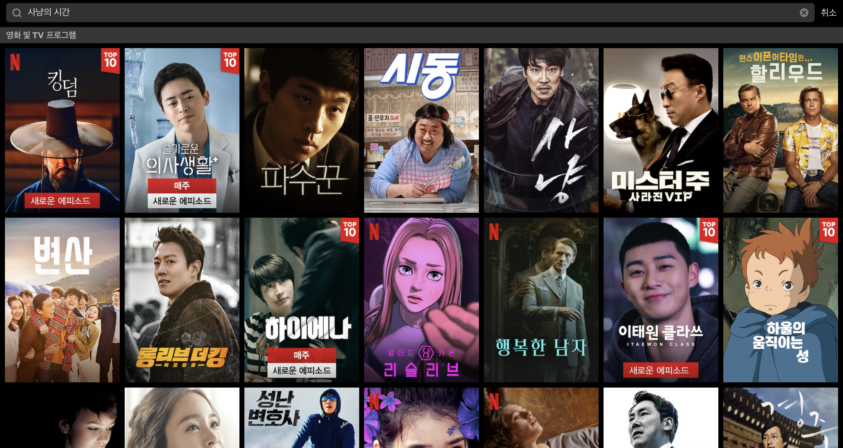 '사냥의' 라는 단어만 치고 '사'만 쳐보기도 했는데,